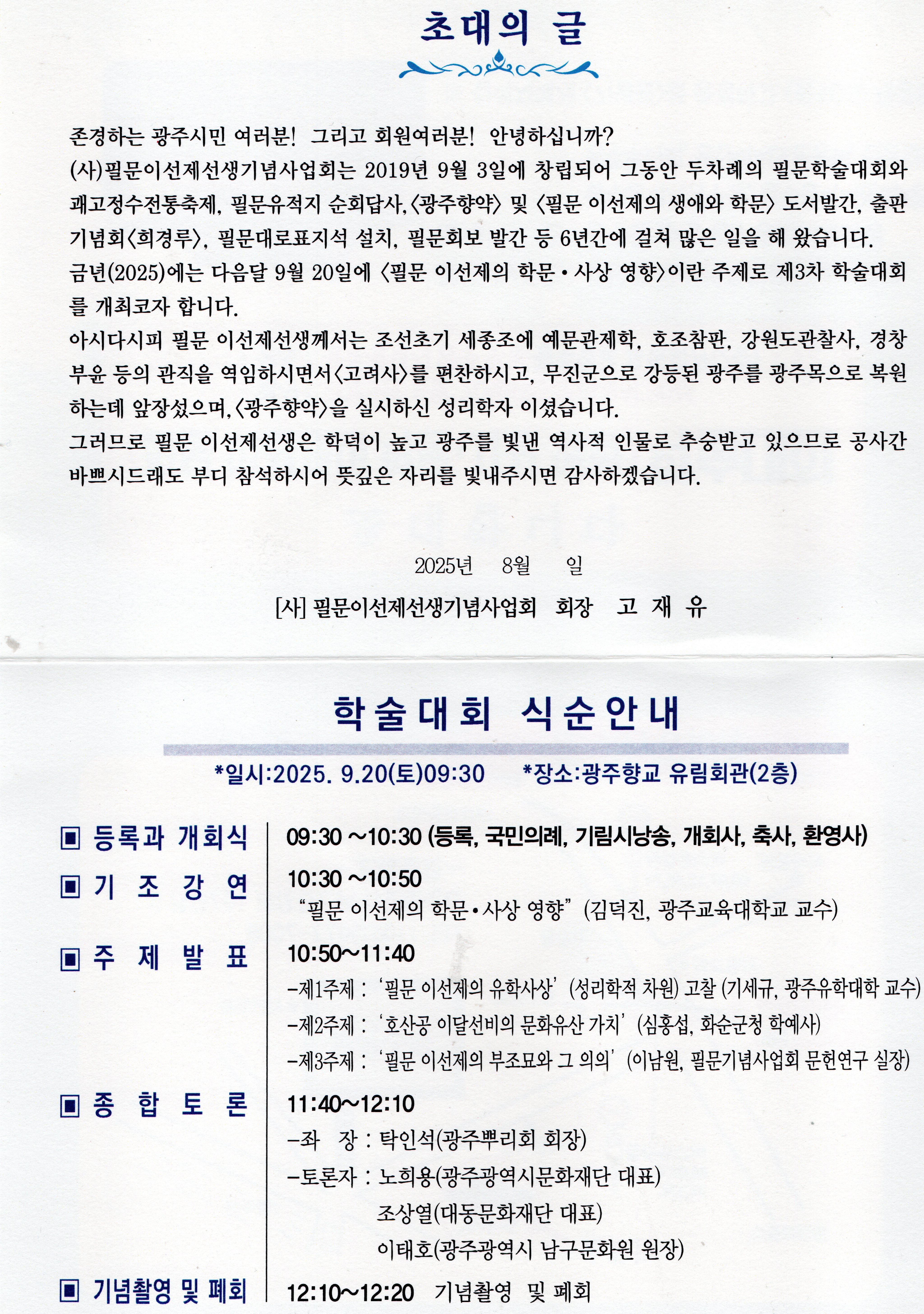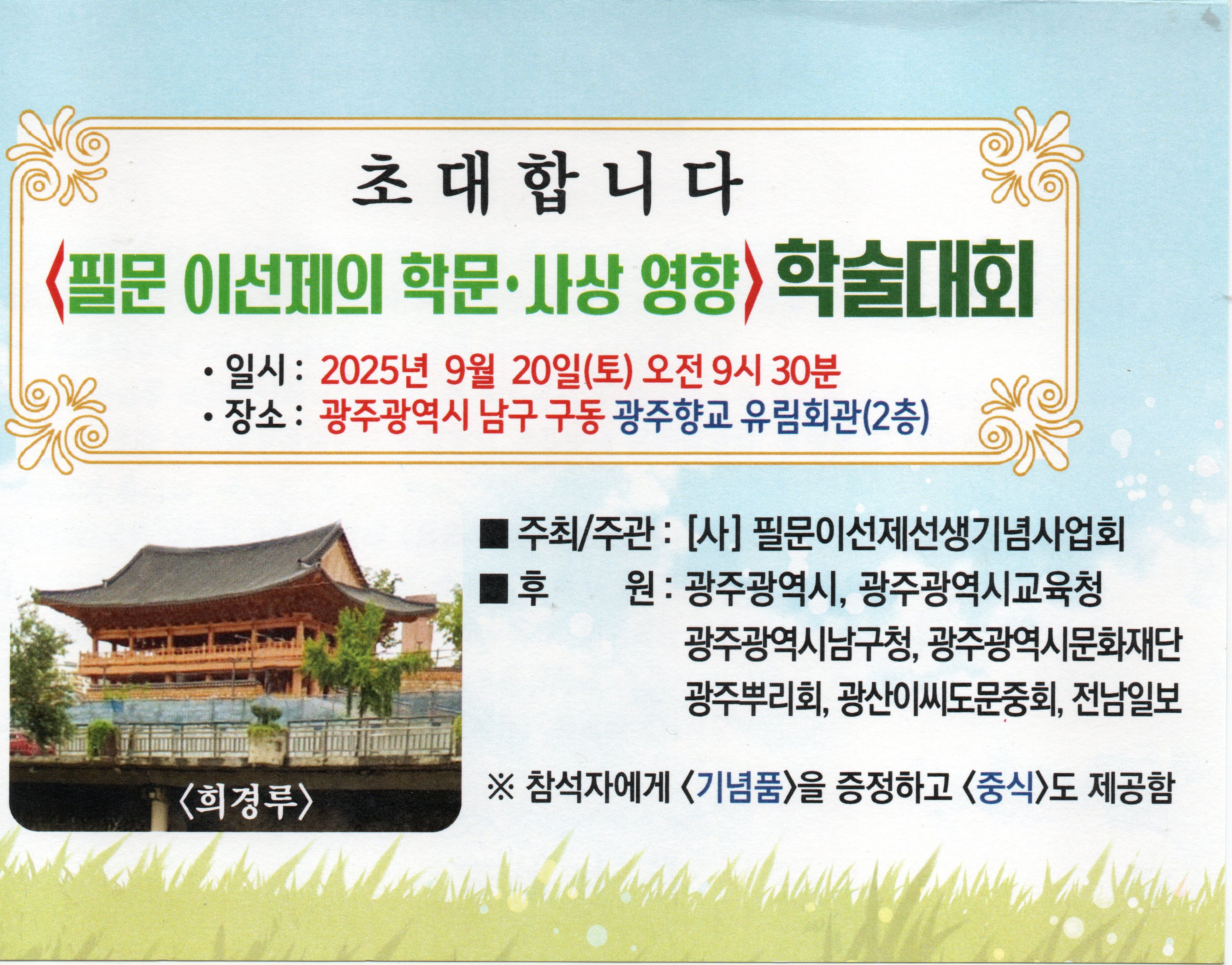 필문 이선제의 학문‧사상 영향 학술대회, 2025.09.20., 광주 유림회관
