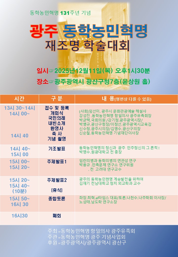광주 동학농민혁명 재조명 학술대회-동학농민혁명 131주년 기념-