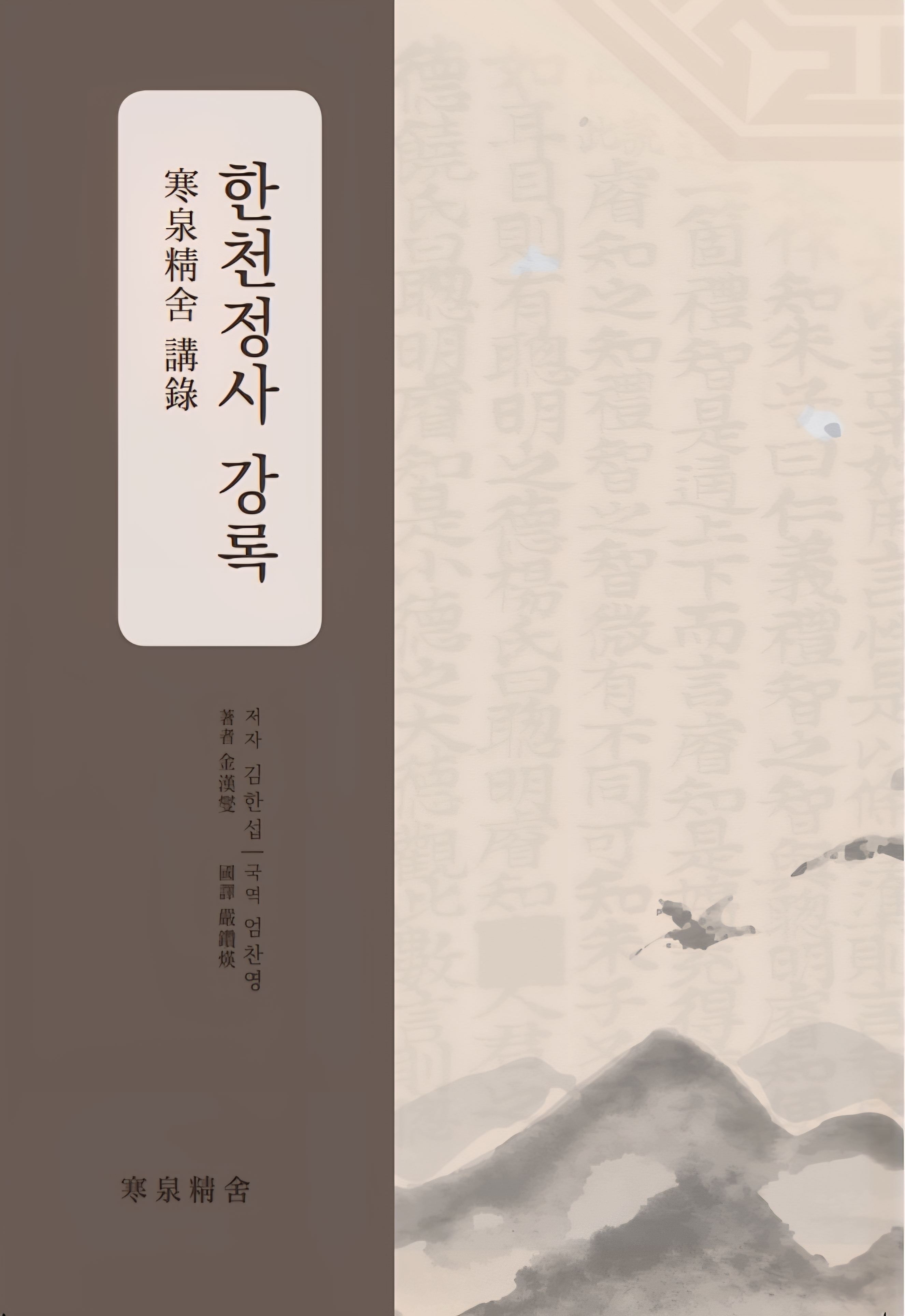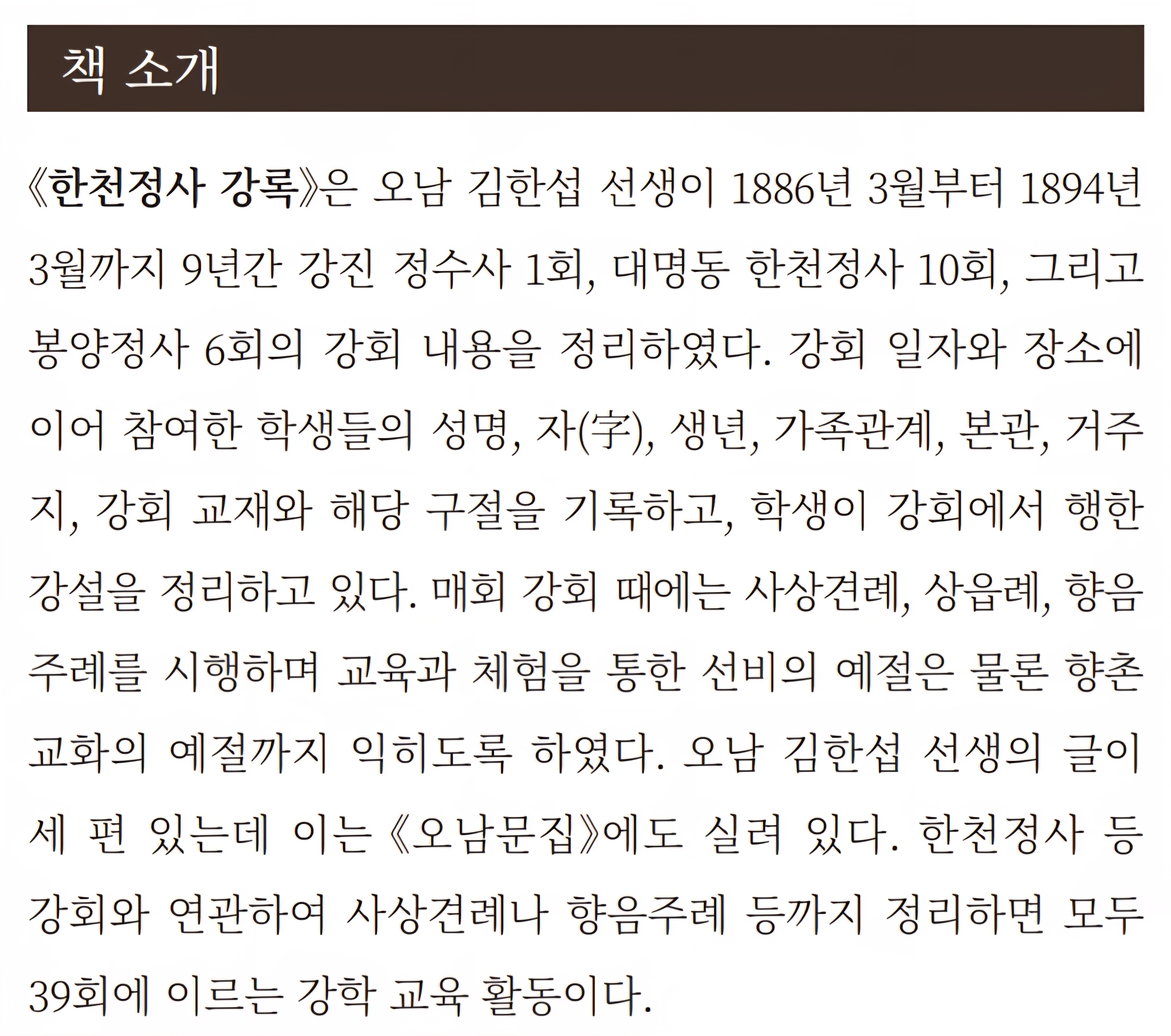 한천정사 강록(寒泉精舍 講錄), 저자 오남 김한섭, 역자 엄찬영, 해제 김희태